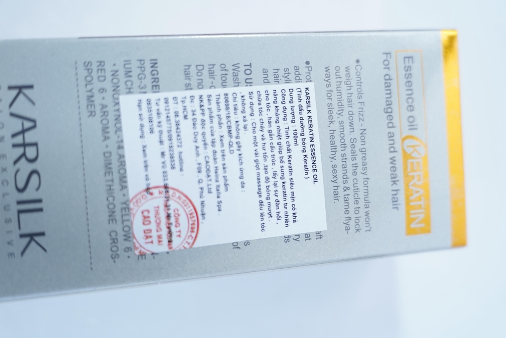 - Tinh chất Keratin siêu min có khả năng kháng nhiệt giúp bổ sung Keratin tự nhiên cho tóc.
